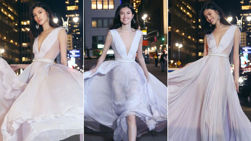 何穗维密晚宴后纽约街头拍美照,一袭白裙冒寒奔跑仙气足!